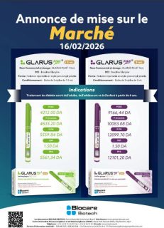 Glarus Plus 1.5 ml et Glarus plus 3 ml. Le groupe pharmaceutique algérien Biocare annonce la mise sur le marché d’une nouvelle gamme d’insuline produite localement, marquant une étape stratégique dans le renforcement de la souveraineté sanitaire de l’Algérie.